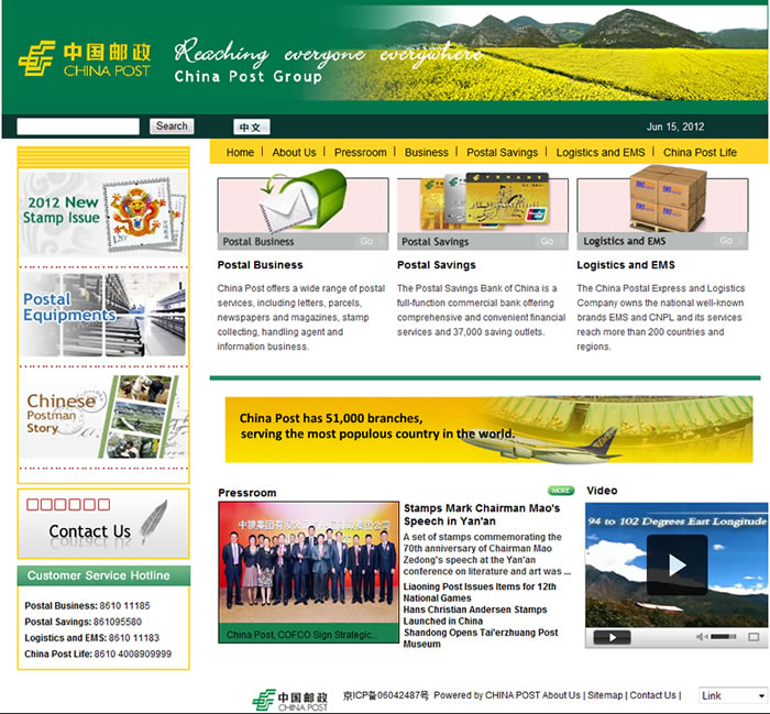 由我公司制作的“郵政英文網(wǎng)”網(wǎng)站與5月1日正式上線; 網(wǎng)址:http://english.chinapost.com.cn/