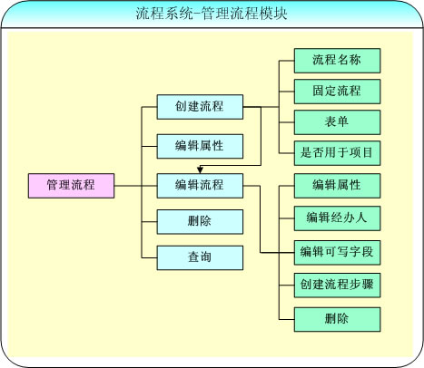 流程是工作流的核心,一切工作都是圍繞著流程來進行。流程系統(tǒng)-管理流程模塊可以實現(xiàn)創(chuàng)建流程(包括新建流程步驟、經(jīng)辦人、編輯可寫字段等部分)、編輯流程、查詢流程等功能。
