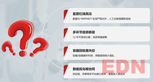 采購(gòu)、生產(chǎn)、物流、醫(yī)院端系統(tǒng)割裂,無(wú)法形成“一物一碼”閉環(huán)。