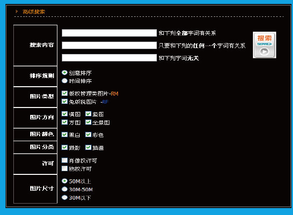 基本搜索:可根據(jù)圖片的編號(hào)、攝影師、關(guān)鍵字、標(biāo)題進(jìn)行匹配搜索,還可以按照版權(quán)類別(RM/RF )或肖像權(quán)和物產(chǎn)權(quán)來(lái)進(jìn)行分類搜索;高級(jí)搜索:可根據(jù)圖片不同條件的關(guān)鍵字、形狀、大小、類別來(lái)精確查詢;結(jié)果中查詢:可在現(xiàn)有結(jié)果中進(jìn)行再次搜索。