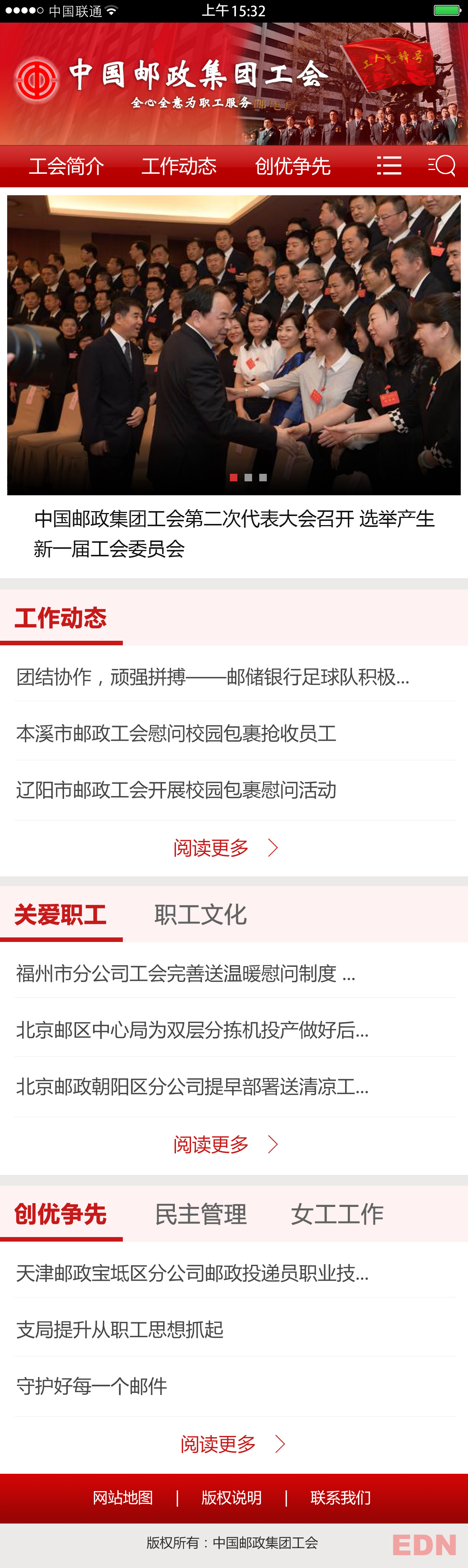 中國郵政工人運(yùn)動(dòng)有著悠久的歷史,中華郵務(wù)總工會(huì)成立于1927年。為適應(yīng)中國郵電體制改革、郵電分營,2000年11月3日,組建國家郵政工會(huì)。2012年3月22日,中國郵政集團(tuán)工會(huì)第一次代表大會(huì)召開,國家郵政工會(huì)正式更名為中國郵政集團(tuán)工會(huì)。
