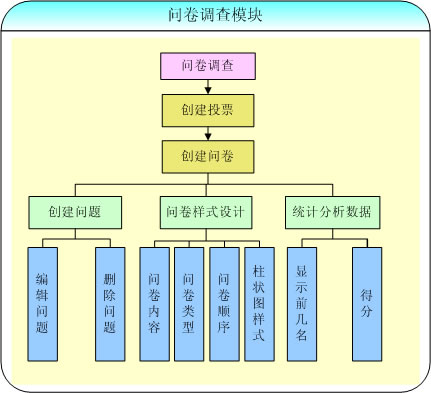 1、增加新的調(diào)查題目。2、設(shè)定每個(gè)調(diào)查問題的屬性,包括: 是否自填答案、是否需要多行填寫、此問題是否允許。3、用戶多選、查看調(diào)查結(jié)果時(shí)是否需要匯總、用戶在填寫調(diào)查表時(shí)是否必答。4、可設(shè)置調(diào)查表的表頭、及背景圖片或顏色等信息。5、可以查詢、統(tǒng)計(jì)調(diào)查結(jié)果,可以刪除廢棄的調(diào)查表,節(jié)省可用的空間。6、投票選項(xiàng)可以是文字性的敘述也可以是圖片的方式。