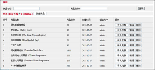管理員在后臺可對所有積分商品進行統(tǒng)一管理:創(chuàng)建、修改、刪除,管理員并可針對新上傳的積分商品給用戶手機發(fā)送商品兌換通知。