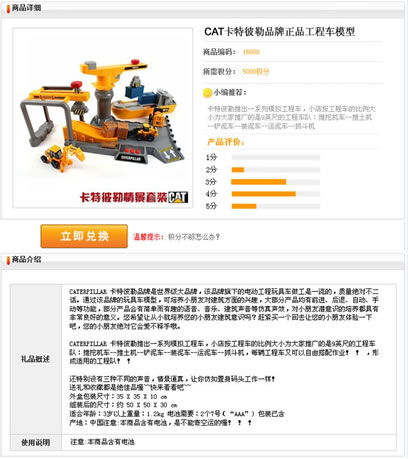 點擊某個商品可查看商品詳細:商品名稱、所需積分、商品評價及介紹…..